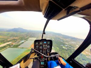 เมื่อใบพัดคอปเตอร์กวาดอากาศกระทั่งทะยานขึ้นฟ้า มันจะมีจุดจุดหนึ่งที่นักบินได้ลิ้มรสชาติบางอย่าง..รสชาติของการบังคับเฮลิคอปเตอร์ด้วยมือของเราเอง กับมุมมองที่เครื่องเหินฟ้า ไต่ระดับขึ้นไปที่ความสูงต่างๆนั้น ภาพที่เปลี่ยน เงาของต้นไม้เต็มต้นจากมุมสูง หลังคาบ้านผู้คนที่เริ่มเล็กลง มันทำให้รู้ว่า ทุกขณะที่ปีกบินผ่าน ภาพที่เปลี่ยนไปนั้นช่างงดงามนัก